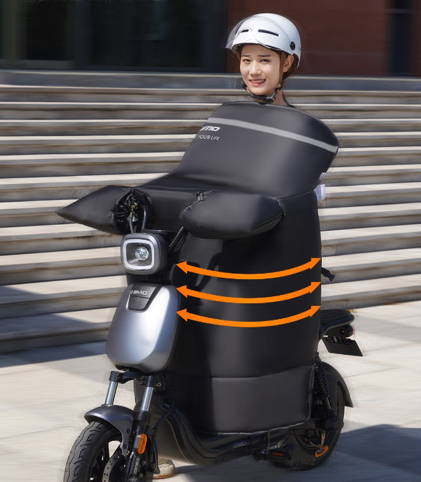 ➤ Скутермен немесе электронды велосипедпен жүру кезінде желден, жаңбырдан және суықтан сенімді қорғаныс.